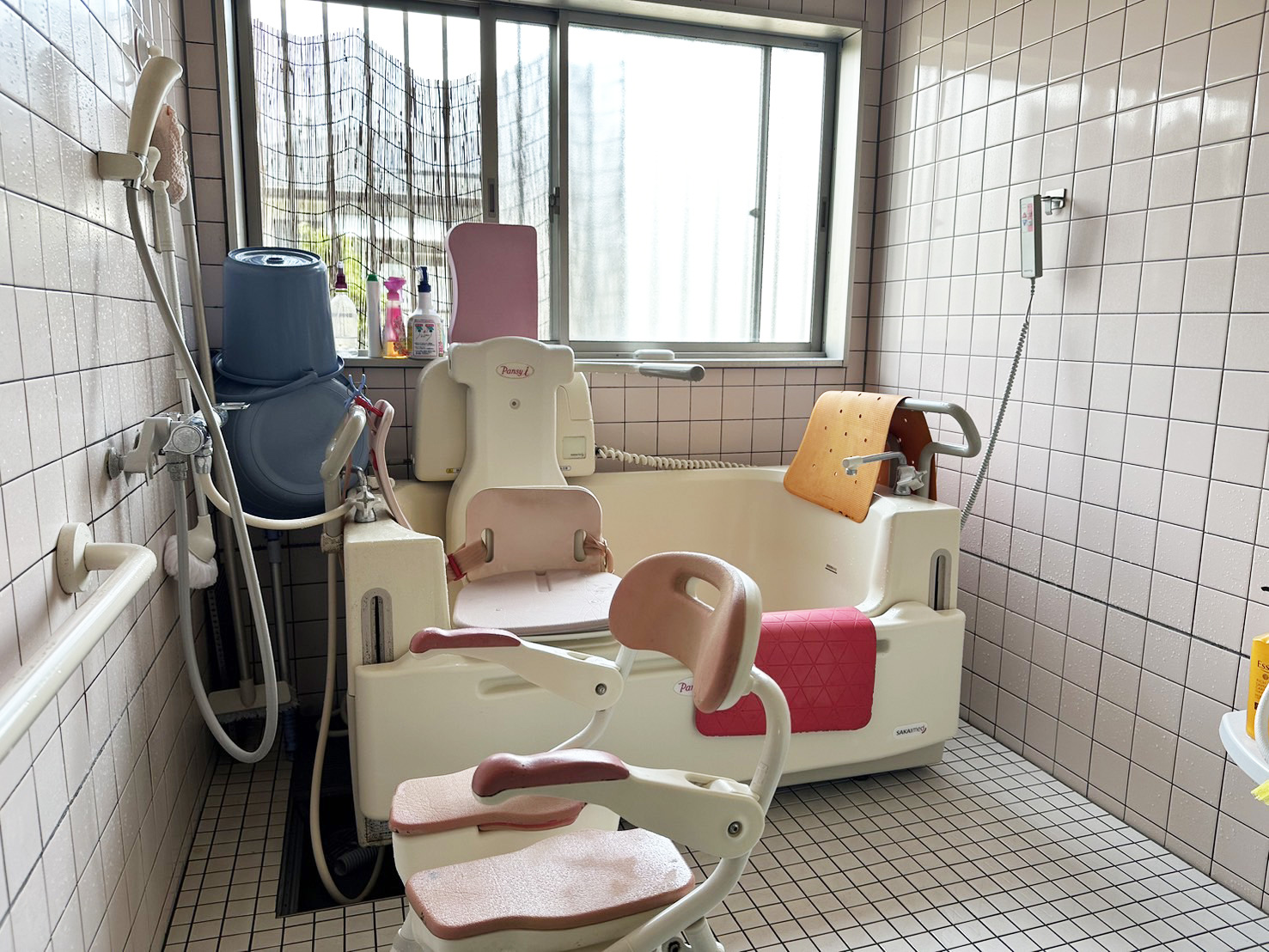 身体の動きに不安がある方でも安心してお風呂に入ることができるシステムバスを導入。入居者様にも大好評です。